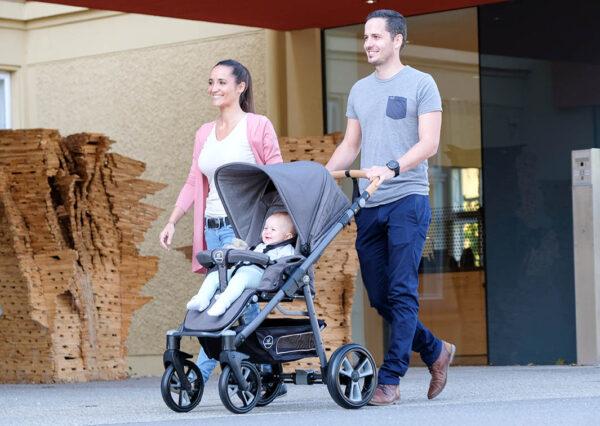 Lux Evo ima i ručnu kočnicu. Da li mnogo šetate brdovitim stazama? Morate li često da vozite kolica uzbrdo i nizbrdo? E, tada ručna kočnica olakšava svakodnevnu vožnju i nudi dodatnu sigurnost u šetnji. Opterećenje kolica za nizbrdo se tada može udobno držati kočnicom i rizik od pada je minimiziran. Pored ručne kočnice, na kolicima je i parkirna kočnica.