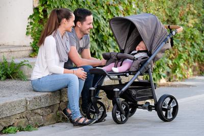 Model Lux Evo je veoma pogodan i udoban za manevrisanje u gradu sa svojim pokretnim prednjim točkovima. Pored toga, i prednji i zadnji točkovi imaju odlično vešanje. Oprema sa vazdušnim gumama i vešanjem obezbeđuje odlično iskustvo vožnje na svim podlogama. Mehanizam za sklapanje je jednostavan za upotrebu, a kolica se mogu sklopiti jednim pokretom. Nadstrešnica se nečujno podešava. Krov i delovi od tkanine se mogu skinuti i oprati u veš-mašini na 30°C.